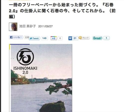 震災復興まちづくり支援活動「石巻2.0」が、 「greenz.jp」に、紹介されました。(前編) http://greenz.jp/2011/09/27/ishinomaki20/ (後編) http://greenz.jp/2011/09/28/ishinomaki202/前後編の2つの記事で、前編では被災後から7月迄、後編では 7月…