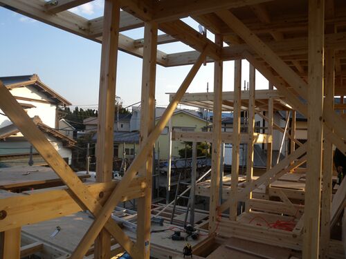 こんにちは。「テラス・ハウス」の現場レポートです。 昨年末に着工した 辻堂の賃貸住宅「テラス・ハウス」が上棟しました。